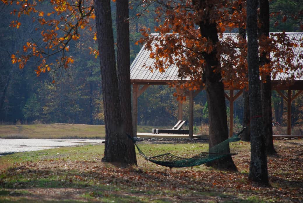 Scattered across Sacred Pines, you’ll find shaded hammocks and porch-style swings—ideal for reading, daydreaming, or napping under the trees.