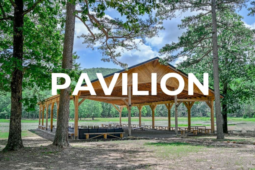 Covered pavilion, indoor event center, large living spaces, outdoor lawns, and lakeside spots. Weather Ready for smooth planning.