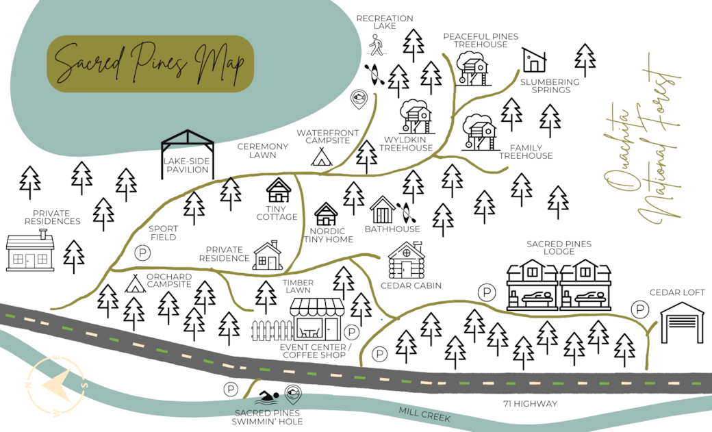 Treehouses and cozy cabins for leaders, teams, or guests to enjoy.